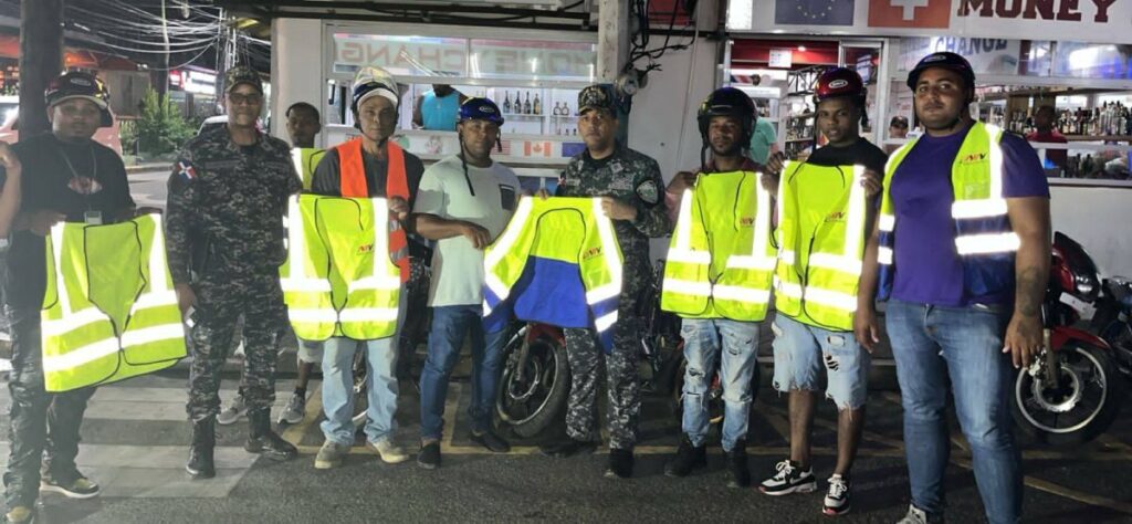 El Batey, Sosúa.- Como parte de una iniciativa encaminada a mejorar la seguridad vial en zonas turísticas, la Policía Nacional, bajo órdenes del general Jorge Luis Galán Guerrero, entregó el pasado viernes cascos y chalecos refractivos a conductores de mototaxistas (motoconchos) en una de las calles de la calle Pedro Clisante de El Batey.
