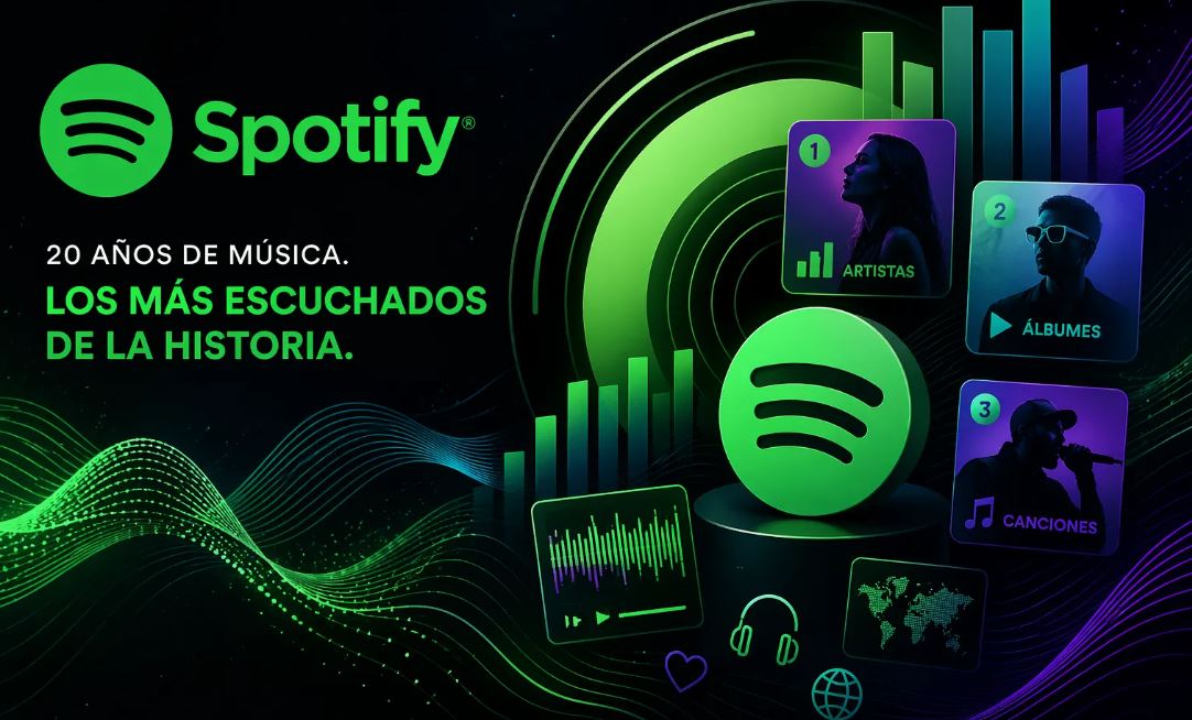 En el marco de su 20 aniversario, Spotify publicó por primera vez el ranking histórico de los artistas, álbumes y canciones más reproducidos en su plataforma, ofreciendo una visión global del consumo musical en la era del streaming.