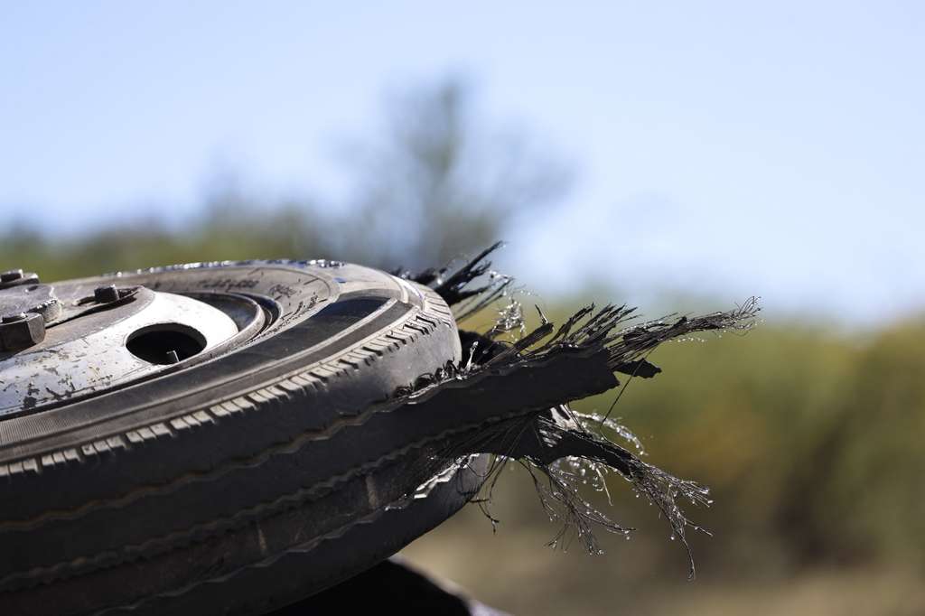 Al autobús ficha 19 se le reventó un neumático cuando circulaba a alta velocidad. En imágenes tomadas por Diario Libre en el lugar se observan las gomas desgastadas.